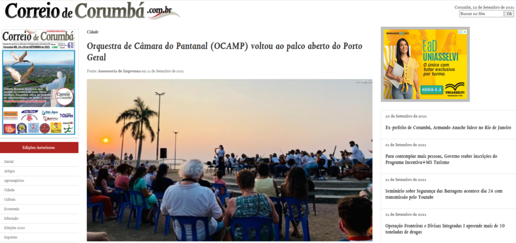 Apresentação foi a primeira aberta e presencial, desde o início da pandemia Após o sucesso que foi o Festival de Música do Pantanal (FEMUP), realizado online em julho deste ano pelo Instituto Moinho Cultural Sul-Americano por meio da Orquestra de Câmara do Pantanal (OCAMP), a Orquestra retomou as apresentações abertas e presenciais ontem, dia 20 […]